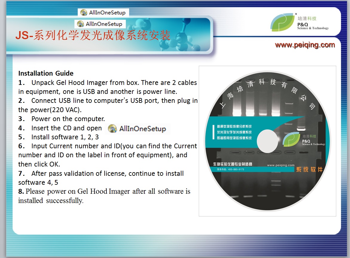 Peiqing JS-M6EV Fluorescent&Chemiluminescence Gel Imaging System is all-in-one machine and it supports plug and play function. It applies to chemiluminescence, multi-color fluorescence detection and gel detection. Peiqing JS-M6EV can capture razor-thin fluorescent light and fluorescent light by means of high resolution and low light-level CCD which combines large aperture and motorized zoom lenses. Deep cooling CCD can remove background noise to the most degree. Large aperture and motorized zoom can capture weak light furthest. Optional various fluorescent light sources and electric filter wheel satisfy experimental demand for nucleic acid imaging and ECL imaging.
